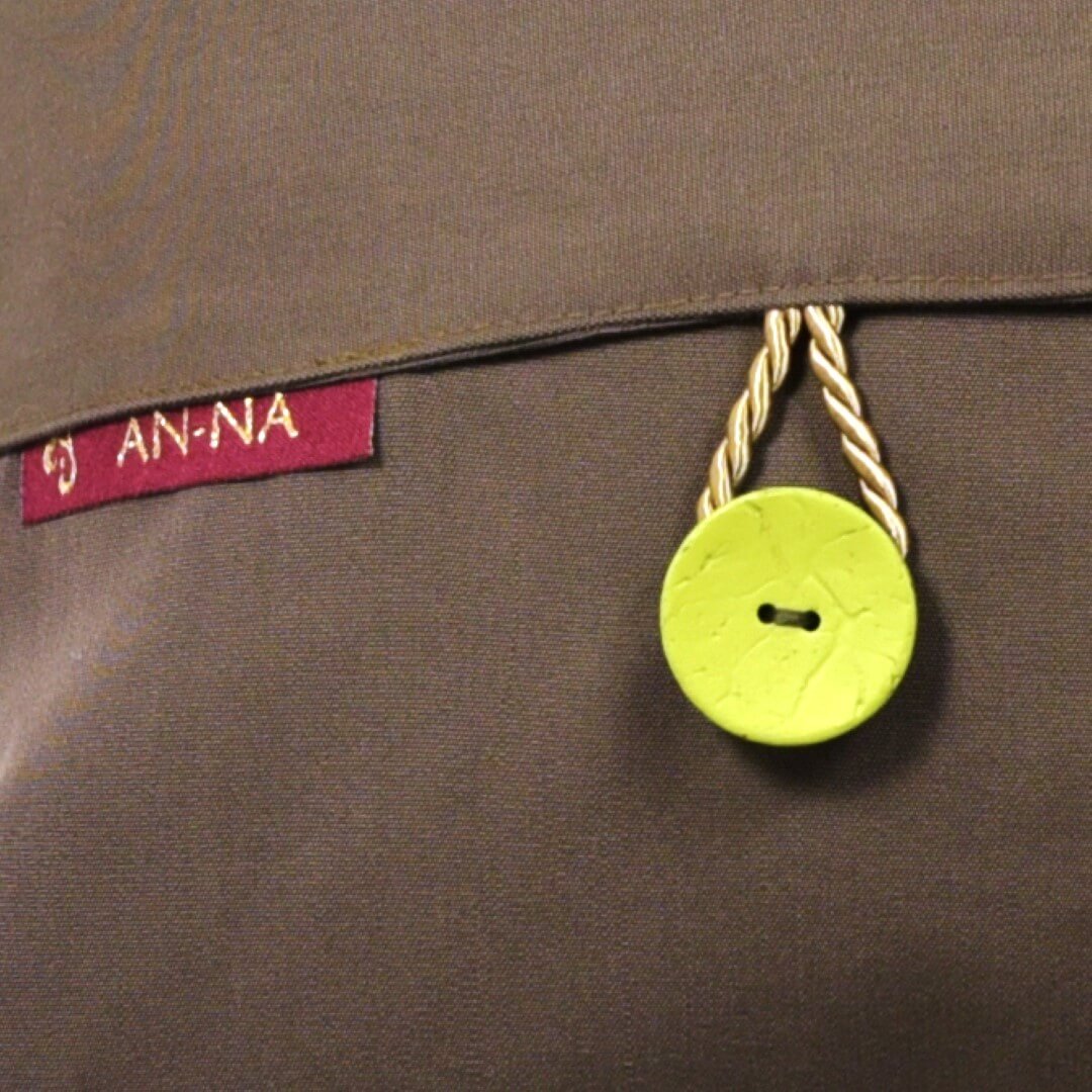 Rückseite: Hier wurde eine Baumwollmischung in einem etwas changierenden Khaki-Mittelbraun verarbeitet, auf dem die grünen Kokos-Knöpfe gut zur Geltung kommen.