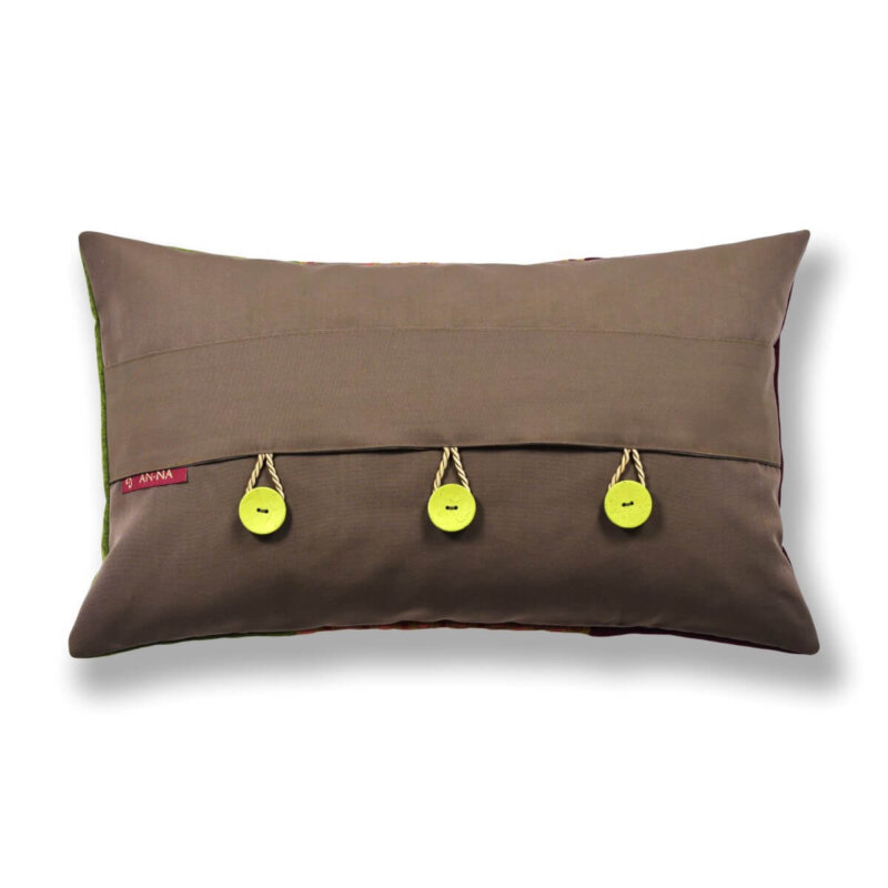 Knöpfe: Kokos ist ein Naturprodukt, daher ist die Färbung der Kokos-Knöpfe unregelmäßiger als bei Kunststoffknöpfen. Um den besonderen Charakter unserer Kissen zu unterstreichen, haben wir uns für Knöpfe aus Naturmaterialien entschieden, die nicht abfärben.