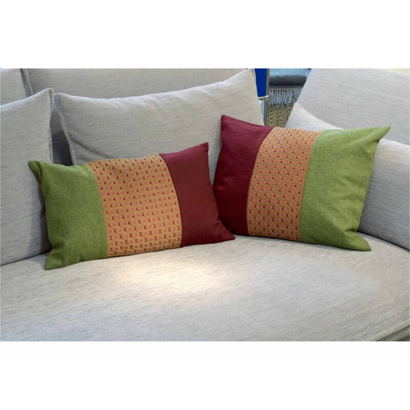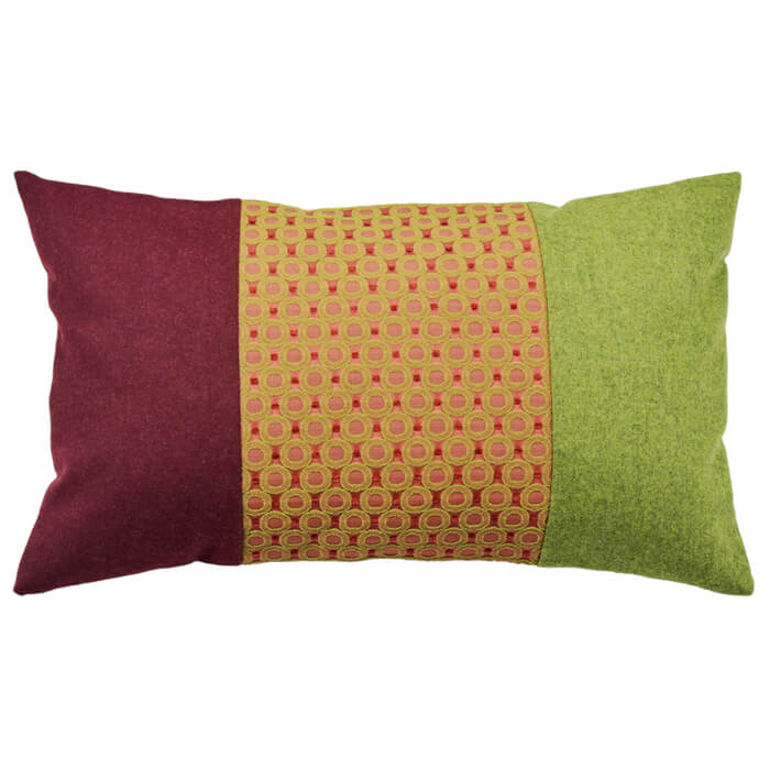 Farben und Stoffe dieses Kissens: