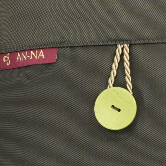 Rückseite: Hier wurde eine Baumwollmischung in Dunkelbraun verarbeitet, auf der die hellgrünen Kokos-Knöpfe gut zur Geltung kommen.
