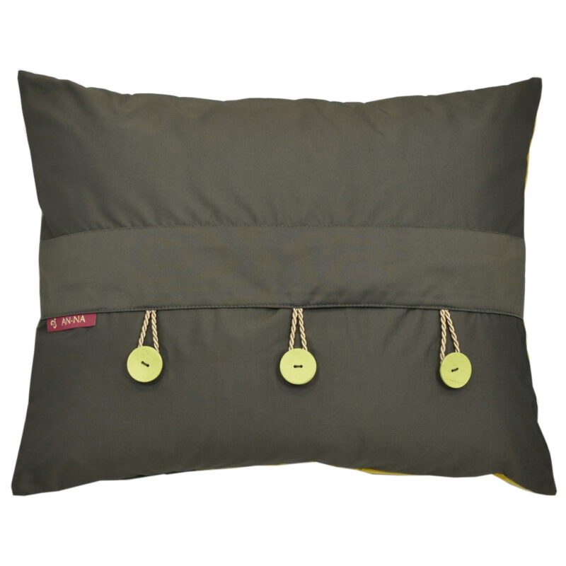 Knöpfe: Kokos ist ein Naturprodukt, daher ist die Färbung der Kokos-Knöpfe unregelmäßiger als bei Kunststoffknöpfen. Um den besonderen Charakter unserer Kissen zu unterstreichen, haben wir uns für Knöpfe aus Naturmaterialien entschieden, die nicht abfärben.