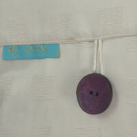 Rückseite: Hier wurde ein heller Jacquard-Stoff verarbeitet, cremefarben, auf dem die lilafarbenen Kokos-Knöpfe gut zur Geltung kommen.