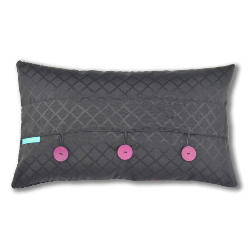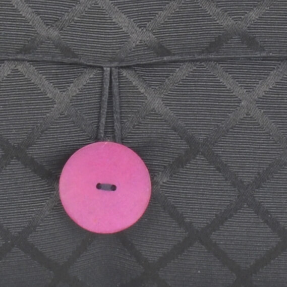 Rückseite: Hier wurde ein schwarzer Jacquard-Stoff verarbeitet, auf dem die pinkfarbenen Kokos-Knöpfe gut zur Geltung kommen.