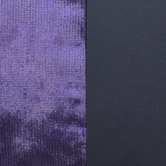 Vorderseite: Auf der Vorderseite wurden drei verschiedene Stoffe verarbeitet, links ein kurzfloriger Samtstoff in intensivem Violett. Dazu bildet der pinkfarbene Stoff rechts einen starken Farbkontrast. In der Mitte wurde eine lilafarbene Baumwollmischung verarbeitet.